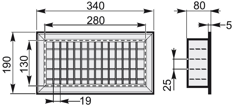 Bocchette di mandata/ripresa rettangolari con alette orizzontali fisse e alettature verticali mobili regolabili manualmente. Da applicare a condotti di ventilazione quadrati/rettangolari con relativi telai oppure su condotti tondi con plenum 300x150.