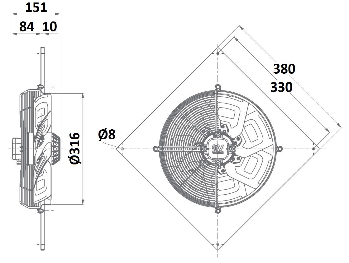 Idoneo per applicazioni in ambienti commerciali ed industriali, per impianti di ventilazione o aspirazione in capannoni, ospedali, discoteche, uffici, teatri, fabbriche, palestre, ristoranti ecc... • Pannelli in lamiera d’acciaio fosfatata, verniciata a polvere epossidica in colore grigio con effetto martellato resistente agli agenti atmosferici. • Motore termo-protetto in classe F, di tipo AC, a rotore esterno, ad una velocità ed equipaggiato di cuscinetti a sfera. • Girante, ad elevata resa aeraulica, con pale in lamiera d’acciao elettrozincata e verniciata con vernice poliestere in colore nero. • Bassi livelli sonori. • Griglia di supporto e protezione antinfortunistica e antivolatile, in anelli di acciaio elettrosaldato e verniciato con vernice epossidica nera, facilmente asportabile per la manutenzione. • Ampio range di temperature di funzionamento continuo (compreso tra -30 °C e +50 °C). • Alimentazione 400 V/60 Hz. • Grado di protezione motore: IP54. • Classe di isolamento: I.