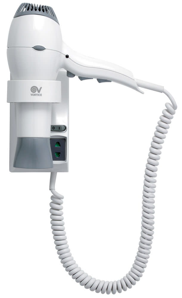 • Asciugacapelli a pistola con supporto a parete.• Interruttore, integrato nel supporto a parete, per la disconnessione della rete elettrica.• Pistola erogatrice stampata in ABS autoestinguente V0.• Dotato di prese rasoio: 230V-50Hz, 120V-60Hz.• Resistenza elettrica protetta dalla sovratemperatura da limitatore termico a ripristino automatico.• Filtro metallico antipolvere a protezione della componentistica interna, garanzia di affidabilità e durata nel tempo.• Lunghezza filo da 600 mm a 2200 mm circa.• 2 velocità.• 2 potenze selezionabili (800/1600W).