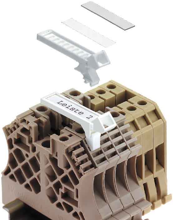 Marcatore per l'etichettatura dei morsetti. I marcatori possono essere etichettati con una stampante o un plotter e il software appropriato.