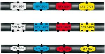 Marcatori privi di alogeni e a ridotto impatto ambientale per linee e cavi. Fissaggio con fascette serracavo.