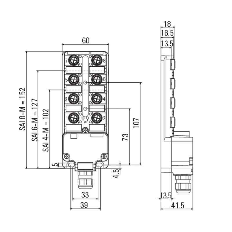 Ausführung der Abgänge für Sensor-/Aktorleitungen: