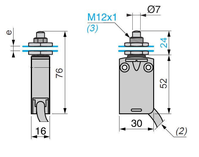 XCMD Positionsschalter M12 Metall Kuppenstößel, 1 Öffner und 1 Schließer, Sprungfunktion, 1m Kabel.