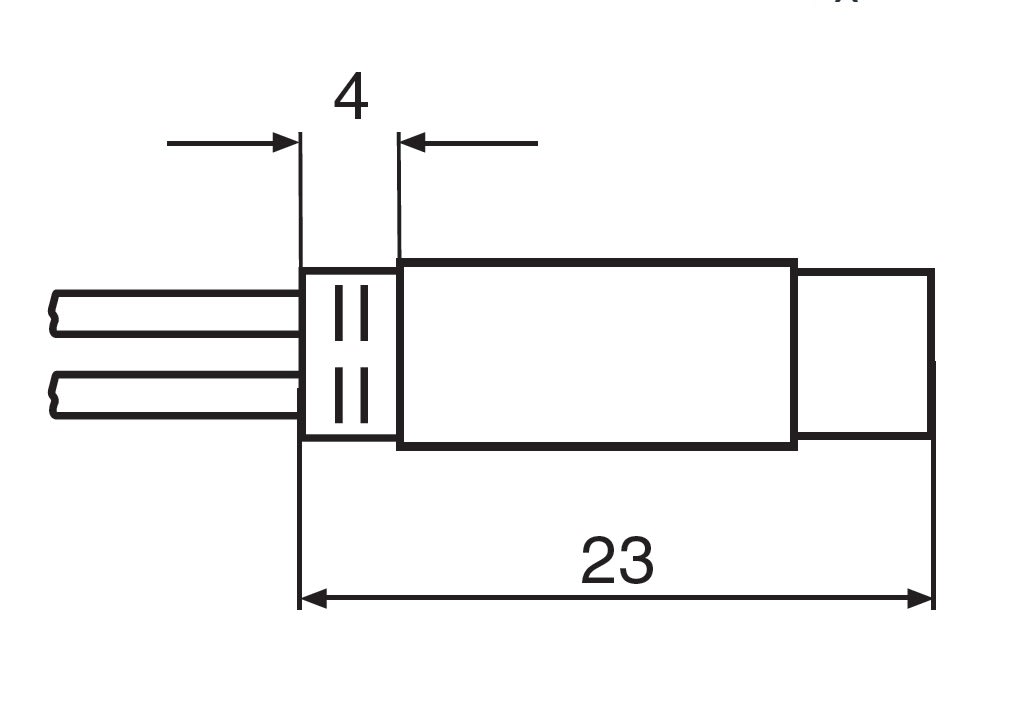 Corpo in policarbonato Led bipolare, bassi consumi, lunga durata con cavetti PVC 0,50 mm² x 150 mm. LED 06W 250V rosso.