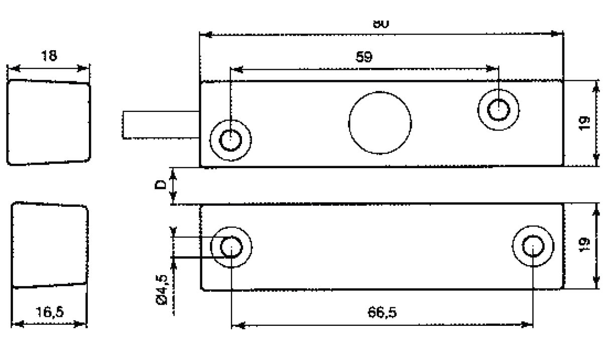Contatto magnetico per infissi di qualsiasi materiale. . Montaggio a vista. In alluminio pressofuso. Grandi distanze di funzionamento. Connessione a filo.