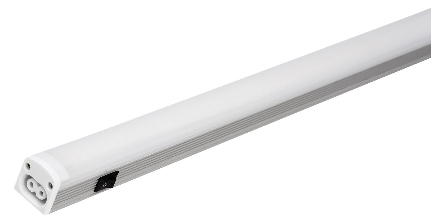Apparecchio con corpo in alluminio in particolare concepito per l’illuminazione sottopensile sia per uso professionale (centro commerciali, vetrine) che privato (garages, cucine). L’utilizzo di LED ad alto rendimento determina bassissimi consumi. Disponibile in cinque misure, è dotato di cablaggio passante per il montaggio in serie. Lunghezza: 1200 mm.