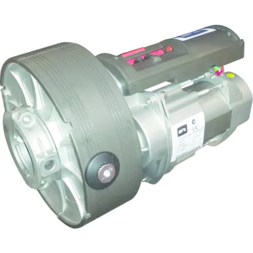 Operatore per serrande con puleggia portamolle diametro 200mm. Coppia massima 170Nm e potenza assorbita pari a 600W. Sblocco con cavo in acciaio e pomello per elettrofreno.
