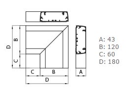 AP-ALU 120x40 AO Angolo piano per canale ALU-B ALLUMINIO OPACO