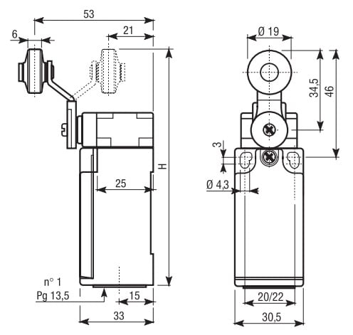 Tipo di elemento di controllo - Leva angolare con rotella