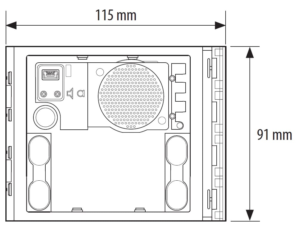 Modulo fonico per la realizzazione di impianti citofonici e videocitofonici 2 fili. Dotato di regolazioni volume altoparlante e microfono. Gestisce fino ad un massimo di 100 chiamate a pulsanti utilizzando moduli pulsanti su doppia fila aggiuntivi. Consente l\'attivazione di una elettroserratura collegata direttamente ai morsetti S+ ed S- (18 V 4 A impulsivi - 250 mA mantenimento su 30 ohm max) ed il collegamento di un pulsante apriporta locale sui morsetti PL. Predisposto per alimentazione supplementare. Dotato di LED frontali per la segnalazione dello stato di funzionamento: apriporta, comunicazione attiva, chiamata inoltrata e sistema occupato. Sensore ottico integrato per l\'accensione della retroilluminazione notturna. Da completare con frontale di finitura. Il dispositivo può essere configurato fisicamente oppure tramite PC e software TiSferaDesign.