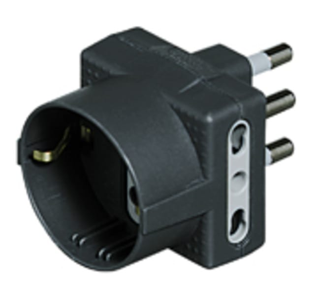 Adattatore TRIS con 1 presa tedesca 2 prese bipasso 10/16A di colore antracite