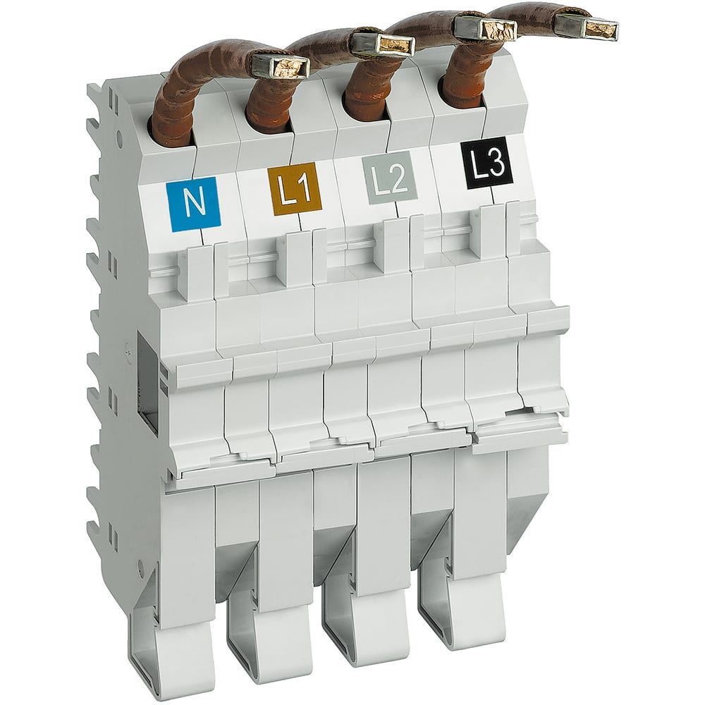 Base per collegamento in cavo dall\'alto BTDIN 4P da 6 moduli - L1+L2+L3+N