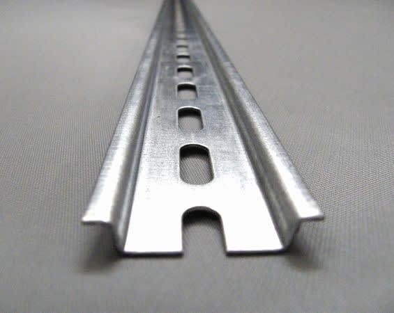 Profilato d'appoggio a norma IEC 60715/TH35 - 7,5 in acciaio zincato bianco sistema Senzimir con asole