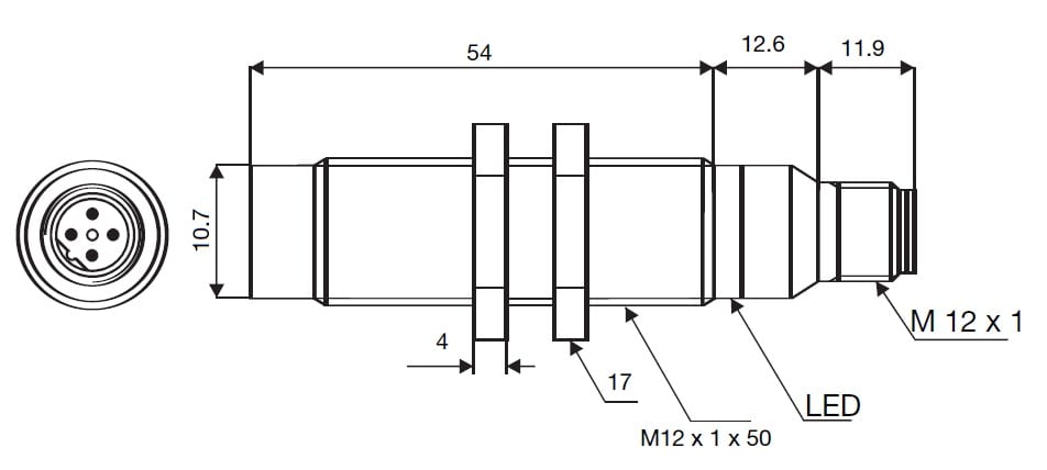 CARLO GAVAZZI - GAVEI1204PPOSL-1 M12 SN= 4MM NA LUNGO INOX CONN. M12 - EI1204PPOSL-1