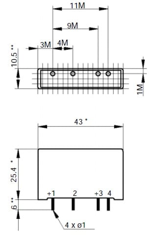 Relè allo Stato Solido per circuito stampato monofase. Dimensioni 25.4 x 43 x 10.5 (mm).