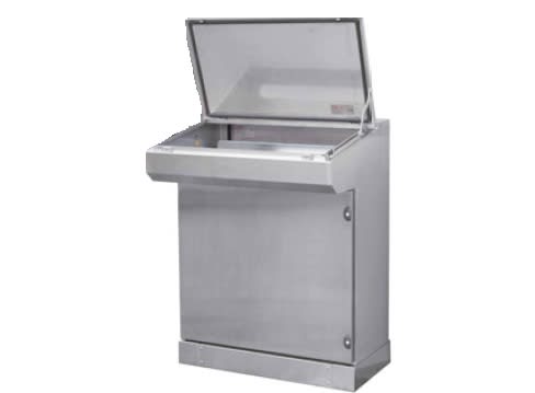 Leggio LZX in acciaio inox. Composto da corpo in acciaio inox AISI304 satinato scotch brite pressopiegato e saldato, porta in acciaio inox AISI 304 satinato scotch brite, piastra interna in lamiera sp. 20/10 sendzimir, guarnizioni, poliuretaniche applicate in colata continua, cerniere reversibili con apertura 110°, serratura con impronta doppia aletta. Grado di protezione IP 55 - TYPE 12.