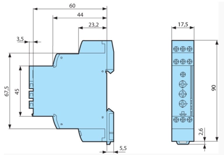 Temporizzatore monofunzione con funzioni: A Ritardo alla messa sotto tensione; At Totalizzatore