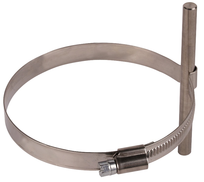 Staffa portafilo per la posa di calate su pluviali. Esecuzione tipo PPS con vite perpetua e nervatura, posa fissa del conduttore.
