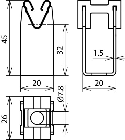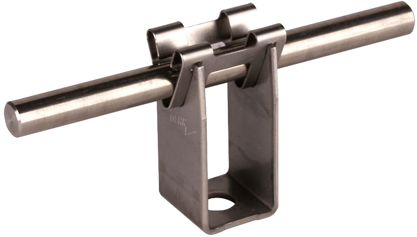 Staffa portafilo DEHNgrip per la posa di conduttori tondi. Sistema di staffaggio in acciaio INOX senza viti con mantaggio semplice (inserire il conduttore dall'alto) con posa libera del conduttore. Esecuzione con altezza di 32 mm.