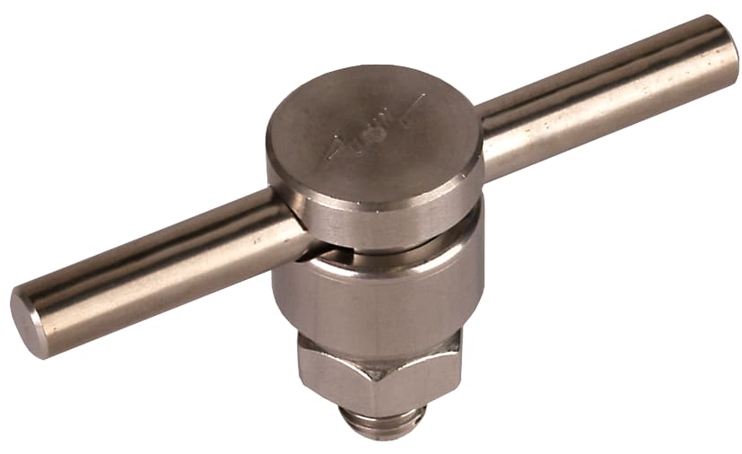 Connettore KS secondo CEI EN 62561-1, per la connessione a portata di corrente di fulmine di conduttori tondi p.es. a profilati piatti, fascette per pluviali oppure altre parti dell’impianto LPS. Esecuzione a corpo unico in acciaio INOX con vite e dado M10.