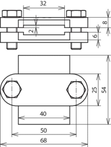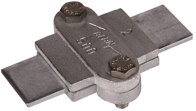 Morsetto di collegamento/sezionamento secondo CEI EN 62561-1 per il collegamento della calata con l'adduzione a terra. Esecuzione a due componenti per due conduttori piatti (larghezza fino a 30 mm).