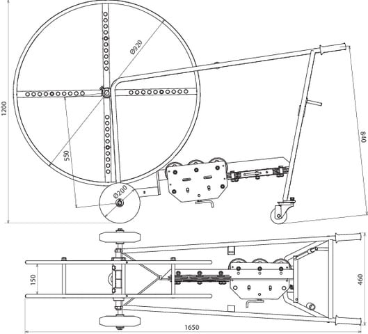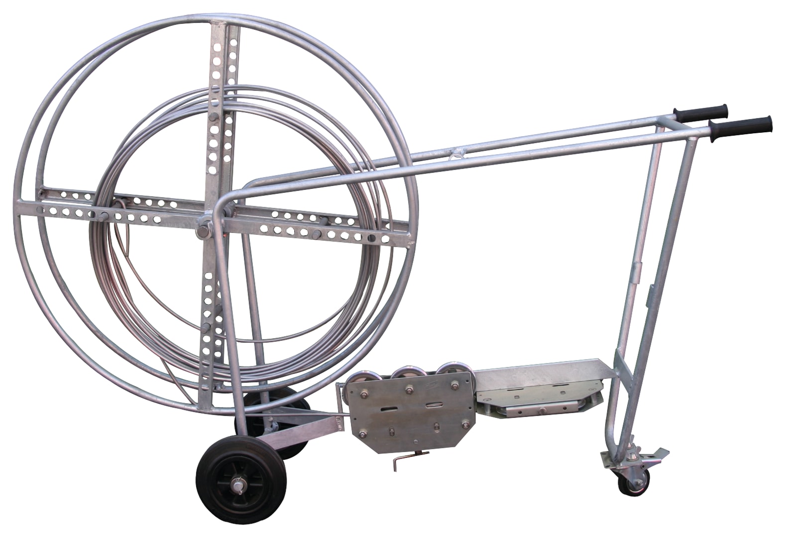 Macchina raddrizzafilo per il raddrizzamento di conduttori tondi di diversi materiali (semicrudo). Esecuzione con 10 rulli, carrabile su ruote in gomma, con dispositivo di svolgimento del filo, possibilità di lavorazione di anelli (Fe/tZn e Al) con diametro interno 450-800 mm e larghezza dell'anello fino a 150 mm.