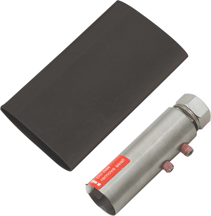 Elementi di connessione per attestare la conduttura HVI long, per la realizzazione delle connessioni della conduttura sul tubo portante (elemento terminale per piastra di connessione). Sono compresi nella confezione un tubo termorestringente e due fascette.