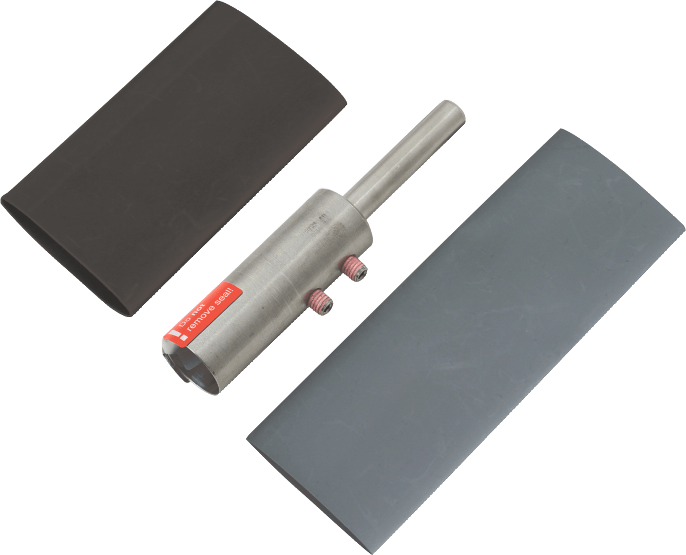Elementi di connessione per attestare la conduttura HVI long, per la realizzazione della connessione della conduttura per altri componenti della protezione esterna da fulmini o dell'impianto di terra. Sono compresi nella confezione due tubi termorestringenti e due fascette.