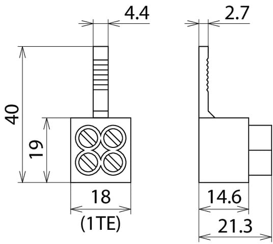 Morsetto di collegamento a perno 2x16 mm2, per il collegamento passante a "V".
