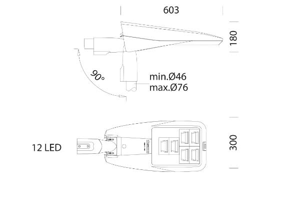 3293 Sella 1 - Asimmetrico 60°. orpo e coperchio: stampati in alluminio pressofuso e disegnati con una sezione aerodinamica a bassa superficie di esposizione al vento. Alette di raffreddamento integrate nella copertura. Ottiche: in alluminio rivestito con argento ad altissima purezza 99.99%, con procedimento sotto vuoto (PVD). Attacco palo: In alluminio pressofuso idoneo per pali di diametro da min. 46mm a max. 76mm orientabile da 0° a 20° per applicazione a frusta; e da 0° a 20° per applicazione a testa palo. Passo di inclinazione 5°. Diffusore: vetro extra-chiaro sp. 4mm temprato resistente agli shock termici e agli urti (UNI-EN12150-1: 2001).Verniciatura: a polvere con resina a base poliestere, resistente alla corrosione e alle nebbie saline e stabilizzata ai raggi UV. Si dichiara l’apparecchio di illuminazione SELLA resistente a 2000 ore di esposizione alla nebbia salina in accordo alla norma ASTM B 117 e a 2000 ore all’esposizione di UV CON in accordo alla norma ASTM G 154 . Dotazione: Connettore esterno per una rapida installazione. sezionatore in doppio isolamento che interrompe l’alimentazione elettrica all’apertura della copertura. Dispositivo di protezione conforme alla EN 61547 contro i fenomeni impulsivi atto a proteggere il modulo LED e il relativo alimentatore.Opera in due modalità: modo differenziale: surge tra i conduttori di alimentazione, ovvero tra il conduttore di fase verso quello di neutro. modo comune: surge tra i conduttori di alimentazione, L/N, verso la terra o il corpo dell’apparecchio se quest’ultimo è in classe II e se installato su palo metallico. A richiesta: apparecchio in classe II, protezione fino a 10KV. Verniciatura a nebbia salino acetica in riferimento alla norma UNI EN ISO 9227 Test di Corrosione in Atmosfera Artificiale. LED: Fattore di potenza: =0,92. Colore: Argento sabbiato. LED 94W - 12960lm - CRI 70 - 700mA - 4000K -30°+40° - surge protector 6/8kV. Apparecchio a LED con reattore elettronico + Lampada.