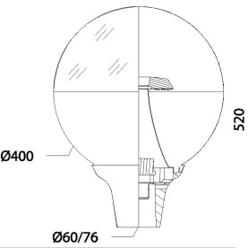 Globo: In policarbonato infrangibile ed autoestinguente V2, stabilizzato ai raggi UV, antingiallimento. Ottima trasparenza ideale per la trasmissione del flusso luminoso. Parte superiore verniciata per rientrare nelle limitazione delle normecontro l’inquinamento luminoso. Base: In alluminio pressofuso. Cono centrale: In alluminio verniciato nero contro l’inquinamento luminoso. Dotazione: Completo di presa-spina per una rapida installazione. Dispositivo di controllo della temperatura all’interno dell’apparecchio con ripristino automatico. Protezione contro gli impulsi conforme alla EN61547. Dispositivo elettronico dedicato alla protezione del modulo LED NORMATIVA: Prodotti in conformità alle norme EN60598 - CEI 34 - 21. Hanno grado di protezione secondo le norme EN60529. Mantenimento del flusso luminoso 80%: 50.000h (L80B20). 20W. 1283 lm. 3000 K