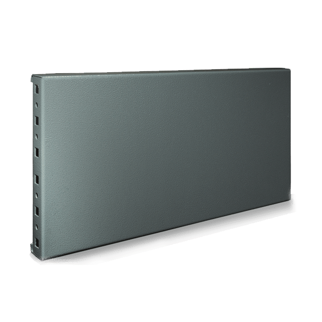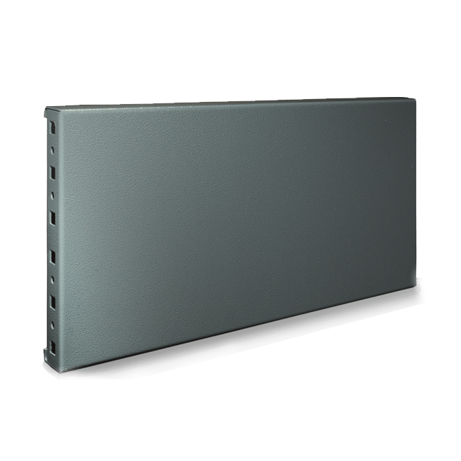 Frontali e laterali in lamiera d’acciaio spessore 15/10 verniciato RAL 7011 disponibili con altezza 100 e 200 mm (oppure 2x100 mm).