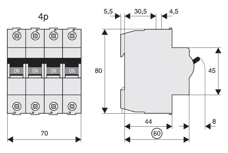 Corrente nominale - 80 A
