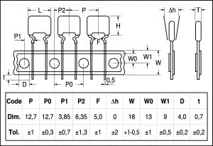 CONDENSATORI MULTISTRATO RADIALI. PASSO:5 mm. TENSIONE:50 V. TEMP. LAVORO: -55°C÷+125°C COG. X7R -30°C÷+85°C Y5V.