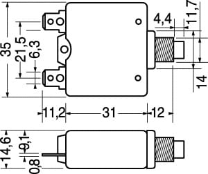 PROTEZIONI TERMICHE A RIPRISTINO MANUALE. POTERE INTERRUZIONE:1000 A. TERMINALI:a saldare. Resistenza: 50 OHM. Corr.: 6A.
