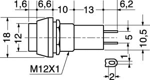 INTERRUTTORI A PULSANTE. PORTATA:1 A - 250 V. TENS. PROVA:1000V per 1'. RES. ISOL.:>100 MOH. RES. CONT.:<20 MOHM. CORPO:materiale fenolico. TERM.:a saldare in ottone. Ø FORO PANN.:12 mm. Col. Puls.: Rosso.