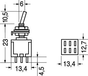 DEVIATORI MINIATURA 2 SCAMBI STANDARD. PORTATA:6 A - 28 Vcc. CORPO:materiale fenolico. LEVA:ottone nichelato. TERMINALI:a saldare. DADO RICAMB.:4/15210. CAPPUCCI PVC:4/6560. Pos.Lat.: Instabile, Instabile.