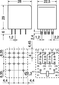 RELÉ MINIATURA DI POTENZA 4 CONTATTI C/O (IN SCAMBIO) 6A SERIE PT. Con tasto di prova e indicatore. CORR. MAX CONT.:6 A. TENS. MAX CONT.:250 V. TEMPO ECCITAZ.:15 mS. TEMPO DISECCIT.:10 mS. ISOLAMENTO :2,5 KV. TEMP. LAVORO :-40°C ÷ +70°C. ZOCCOLO DIN:93/6814. MOLLA:93/6868.