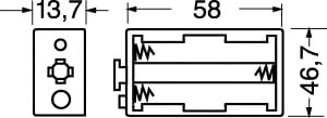 PORTAPILE PER 3 PILE STILO (AA-UM3). CORPO:polipropilene. CONNESSIONE:a bottone. MEDIANTE:4/11012 - 4/11013. PER BATTER.NI-CD:30/212. PER BATTER.NI-MH:30/208. PILE ALCALINE:30/24050 - 30/25050.