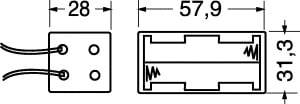 PORTAPILE PER 4 PILE STILO (AA-UM3). CORPO:polipropilene. CONNESSIONE:a fili liberi. LUNG. FILI:150 mm. PER BATTER.NI-CD:30/212. PER BATTER.NI-MH:30/208. PILE ALCALINE:30/24050 - 30/25050.
