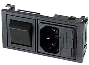 SPINA TRIPOLARE C14 CON PORTAFUSIBILE ED INTERRUTTORE BIPOLARE A BlLANCIERE. FISSAGGIO:autobloccante. PORTATA:10 A - 250 V. CORPO:bachelite. CONTATTI:ottone nichel.. FISSAGGIO CAVO:faston 6,35. PER PRESE:13/845. CAVI:6/300.