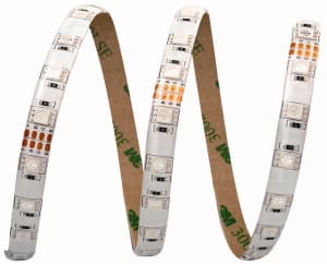 Striscia flessibile adesiva su circuito bianco con led SMD RGB utilizzabile in innumerevoli applicazioni come segnaletica, simboli, illuminazionedecorative, ecc. La serie RAFFAELLO è indicata in quelle applicazioni ove si vuole avere una luce colorabile uniformemente distribuita e di buona intensità luminosa. Fornita in bobina lunga 5 mt che contiene 300 led SMD separabili ogni 6 led (10cm). Bobina 60 LED/mt. 5050 RGB 14.4W/mt 24V IP65.
