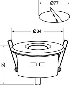 GHIERA TONDA IP44 CON CONNESSIONE GU5,3. Ghiera portalampada rotonda professionale da incasso in alluminio con vetro e guaina di protezione.Fissaggio della lampada ad incastro. Adatto per installazioni tradizionali e in ambienti soggetti ad umidità o spruzzi d’acqua. Fornita con cavetto connessione GU5,3. Utilizzabile anche per lampade GU10 previo utilizzo del connettore 19/6992 non in dotazionePotenza max installabile: 50w. Foro incasso: 77mm. Colore: Spazzolata.