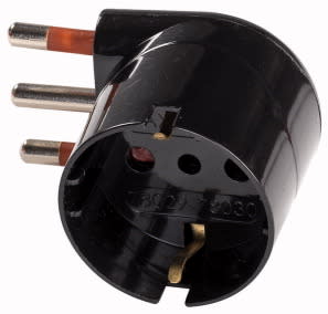 ADATTATORE PRESA SHUKO 90° - SPINA TRIPOLARE 10A. Con spina 10A e presa schuko. PORTATA:10A-250V. POTENZA MAX:1500 W. CORPO:tecnopolimero. PER PRESE PANN.:28/1046. PER SPINA SCHUKO:28/1048. Colore: Bianco.