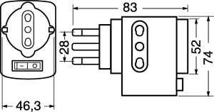 ADATTATORE MULTIPLO SPINA 16A ROTANTE 2 PRESE BIPASSO 10/16A – PRESA BIPASSO SHUKO. Con terra; base e coperchio in materiale termoplastico antiurto. Prese con alveoli di sicurezza schermati e pina rete 16A rotante. COLORE:Bianco. PORTATA:16A - 250V. POTENZA MAX:1500 W. 2 PRESE BIPASSO:10/ 16A+T. 1 PRESA SCHUKO: 16A+ T. PER SPINE SCHUKO:28/1048. PER SPINE VOL.10A:28/1010. PER SPINE VOL.16A:28/1030.