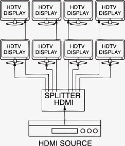 DISTRIBUTORE DI SEGNALE SPLITTER 1x8 HDMI. Dotato di 1 ingresso HDMI e 8 uscite HDMI in modo da poter visualizzare il segnale in uscita da un dispositivo fino a 8 monitor LCD. Supporta il collegamento in cascata fino a 3 livelli (in base alla qualità delcavo). Lungh. MAX cavo ingresso:20mt. Lungh. MAX cavo uscita:20mt. Dimensioni: 280x145x34mm. Risoluzione Massima: Ultra HD 4K.