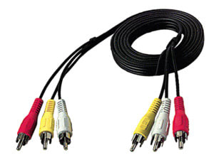 CAVI AUDIO/VIDEO. CONNETTORI:3 SPINE RCA. 3 SPINE RCA. FINITURA:NICHELATA. COLORE GUAINA:NERO. Lungh.: 1,5m.