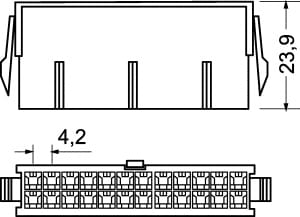CONNETTORE PANNELLO PORTA MASCHIO AMP SERIE VAL-U-LOK. Permettono connessioni semplici ed immediate. PASSO:4,2mm. CORPO:nylon. GRADO INFIAM.:UL 94V-2. TENSIONE:600Vca. PORTATA MAX:9A. RESIST. ISOL.:1.000 MOhm. DURATA:50 cicli. PER CONTATTI:98/52010. PER CONNETT.:98/52302. Num.Vie: 10.
