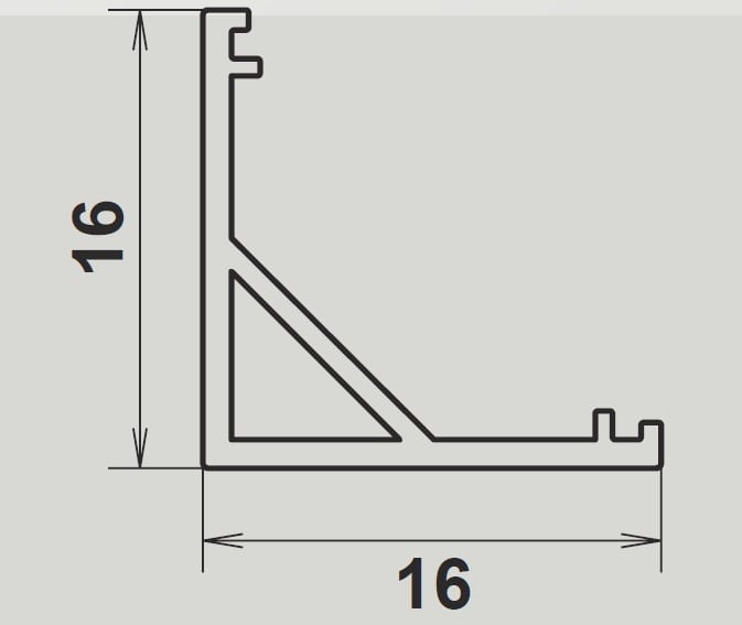 PROLINE 1616. Profilo in alluminio anodizzato. Staffe di fissaggio posteriori. Finitua: Alluminio anodizzato. L: 2000mm.
