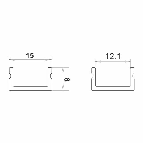 KIT PROLINE 1508 Il Kit è composto da: Profilo + diffusore + tappi di chiusura + adesivo di fissaggio. Micro profilo in alluminio anodizzato. Diffusore in policarbonato trasparente resistente ai raggi UV. Lunghezza barre fino 1m. Finitura: Alluminio anodiz.